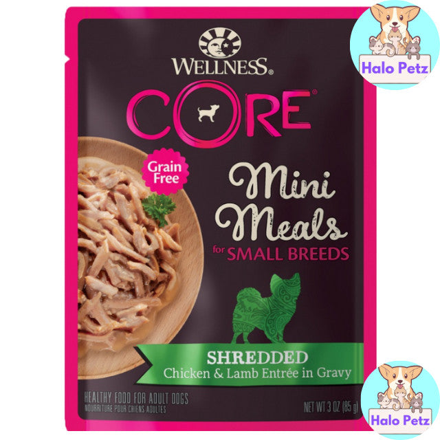 Wellness Core mighty tasty, mighty nutritious mini meals packed with meat just for your small dog. Served in a convenient, single-serve pouch.
